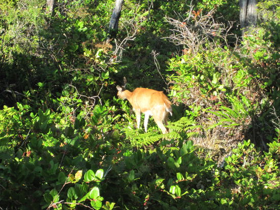 Da es noch recht zeitig am Nachmittag ist, steht jetzt der westliche Teil des "Wild Pacific Trails" auf dem Programm. Das ist ein schöner Wanderweg entlang der Küste. Höhepunkt ist ein zahmes Reh, das kaum den Weg freigibt. Der Weg ist kein Rundweg, es gibt aber auf dem Rückweg teilweise alternative Wege.