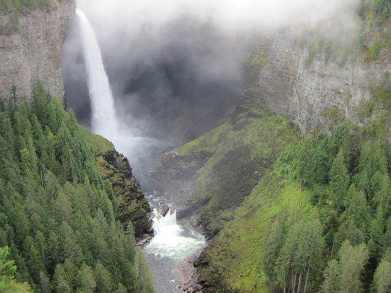 Die Helmcken Falls sind noch bekannter, hier etwas im Frühnebel.