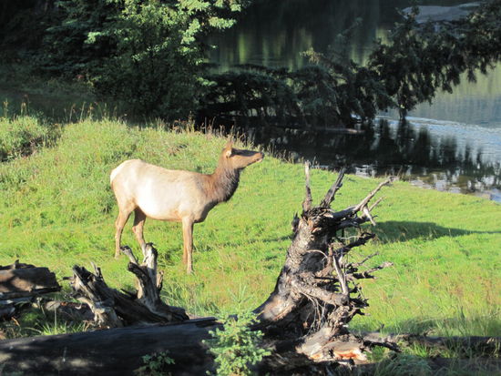 Heute geht es nach dem guten Frühstück zum Mount Edith Cavell. Vorher ist Eiskratzen an den Autoscheiben angesagt, es sind -1°C. Ein kleiner Stau am Highway hat diesmal keinen Bären sondern (vermutlich) ein Karibu zur Ursache.
