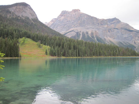 Ein Wanderweg führt weiter nach Norden, an einigen kleineren Wasserfällen vorbei zu den Laughing Falls. Die heissen wohl so, weil sich das Geräusch wie Lachen anhört. Am späten Nachmittag geht es dann noch zum Emerald Lake, direkt am Chateau ist viel los, auf dem Wanderweg rund um den See wird es deutlich ruhiger.