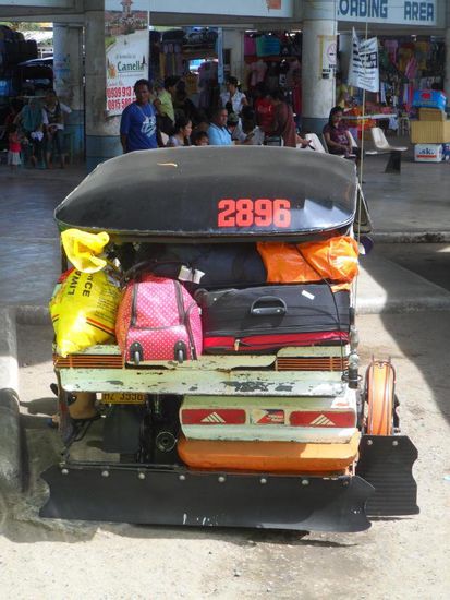 Nach einer Nacht in Puerto geht es mit einem Bus weiter nach El Nido im Norden der Insel. Aber vorher muss ich noch schnell ein paar Behoerdengaenge machen. Zum einen habe ich in Suedamerika kein Visum fuer die Philippinen bekommen und so blieb mir erstmal nichts anders uebrig als ohne Visum einzureisen (dann bekommt man als Deutscher 21 Tage Aufenthalt) und dann vor Ort die Aufenthaltserlaubnis zu verlaengern. Das wollte ich eigentlich in Manila erledigen, aber da ich eine kurze Hose anhatte wurde mir der Zutritt zum Office untersagt. Auf Palawan ging hingegen alles total unproblematisch - ich hatte mir aber zur Sicherheit extra eine lange Hose angezogen