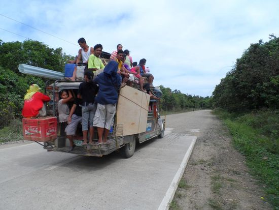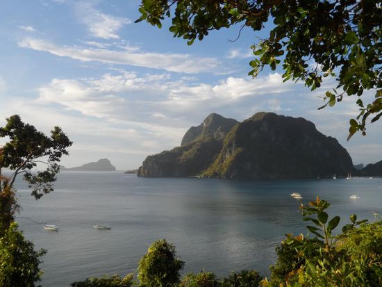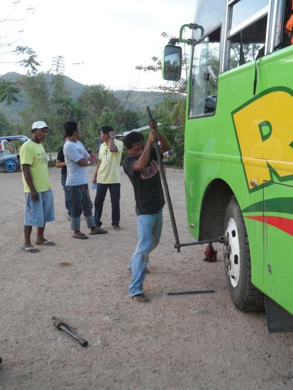 Die 7.5 stuendige Busfahrt von Puerto nach El Nido war landschaftlich echt klasse. Palawan ist ein sehr gruene Insel, neben viel Wald geben vorallem die Reisfleder dem Land eine irren Farbtupfer. Unterwegs haben wir sogar ein paar Affen am Strassenrand gesehen. Ausser eine Reifenpanne verlief die Fahrt problemlos.
