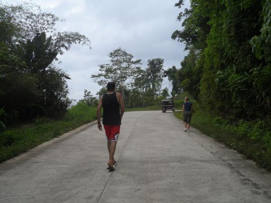 Von El Nido ging es morgens mit einem Bus in Richtung Puerto. Am Abzweig nach Sabang haben wir uns rauswerfen lassen. Da wir jedoch keinen Bock hatten 2 Stunden auf das naechste Jeepney zu warten haben wir uns mit einem Traveller ein Tricycle geteilt.