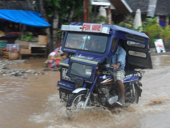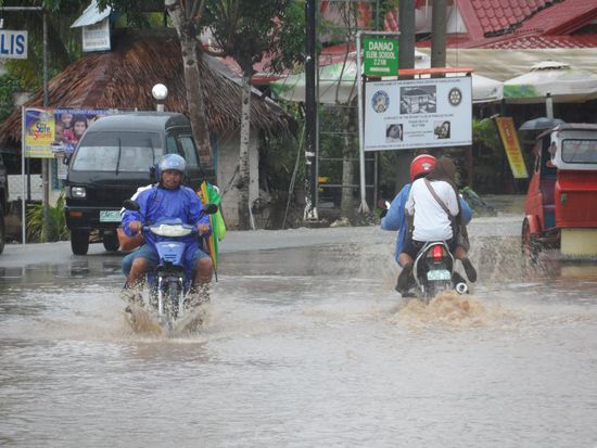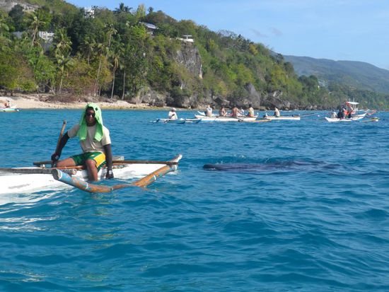 Die dreistuendige Rueckfahrt mit dem kleinen Fischerboetchen von Cebu nach Bohol hatte es echt in sich. Wegen dem hohen Wellengang wurden wir ordentlich durchgeschaukelt und nass. Zum weiteren Komfort hat noch der mit Abstand lauteste Bootsmotor der Welt beigetragen - ein Presslufthammer ist Musik in meinen Ohren. Ach ja und dann ging mitten auf offener See auch noch der Motor kaputt. Da musste der Schiffsjunge mal schnell ins Wasser huepfen und mit dem Hammer alles richten.