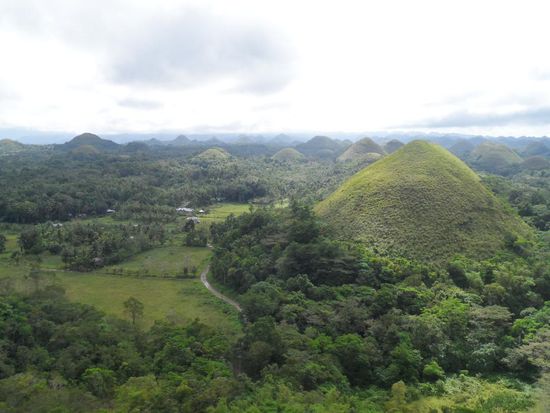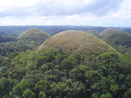 Und wieso nennt man diese Huegel nun Schokoladen Huegel? Weil sie im Sommer sich braun faerben und dann wie wie Hershey"s Schokolade LINKaussehen.