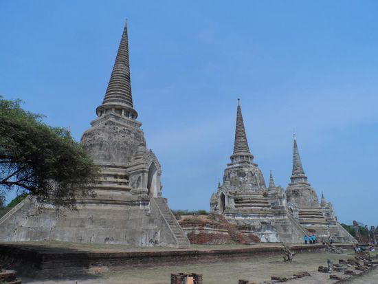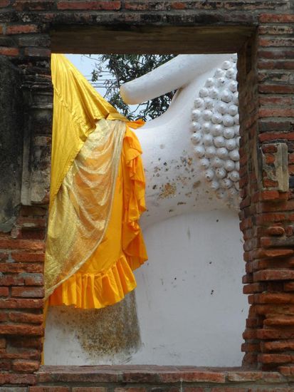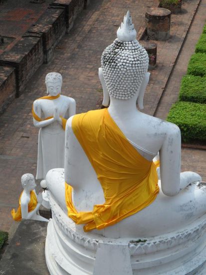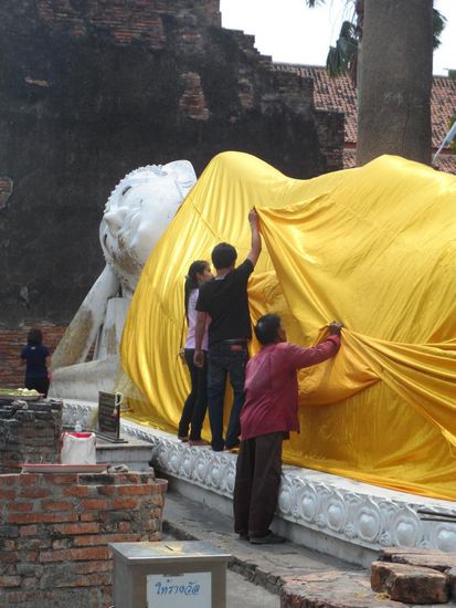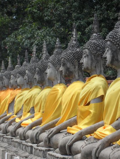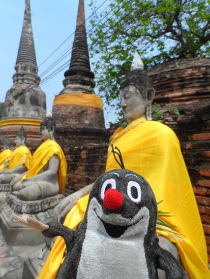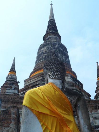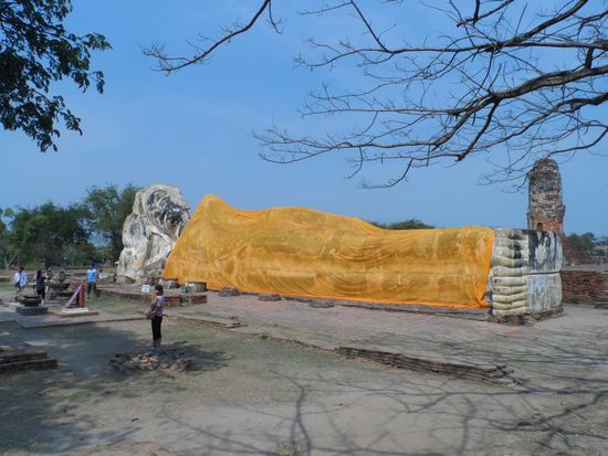 Von Bangkok haben wir einen Tagesausflug nach Ayutthaya gemacht. Das Hochwasser von 2011 hat deutliche Spuren bei vielen Ruinen hinterlassen. Damals stand das Wasser in den Ruinen einen Meter hoch.