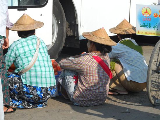 Mit dem Taxi ging es zum Busterminal in Yangon. Das liegt ziemlich weit ausserhalb so das die Fahrt ca. 45 Minuten gedauert hat.