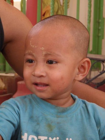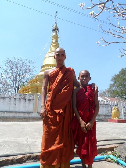 Unterwegs habe ich bei einem kleinen Tempel angehalten, wo ich sofort freundlich von den Moenchen und einer Horde Kinder begruesst wurde.