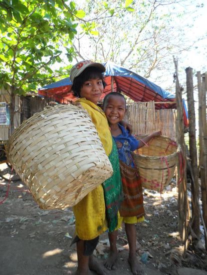 Nachdem wir von dieser netten Familie eingeladen wurden einen Blick in ihr Haus zu werfen (sehr basic, die schlafen auf dem Boden) wurden uns zum Abschied sogar noch alte Muenzen und lustig geformte Steine geschenkt und das obwohl sie eigentlich fast nichts besitzen.