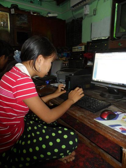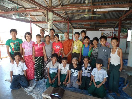 Die Kids werden hier von zwei Moenchen die extra aus Yangon gekommen sind unterrichtet (Englisch & Computer).