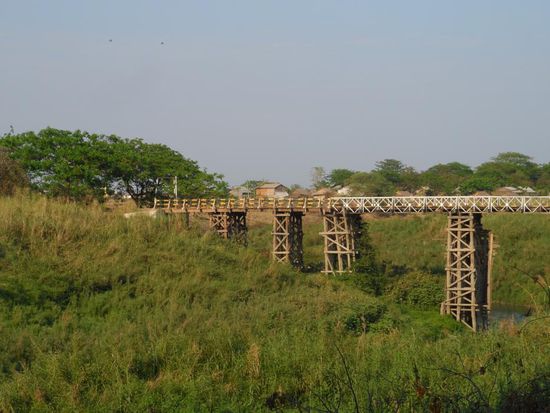 So richtiges Vertrauen in die Baukuenste will bei dieser Bruecke nicht aufkommen, sie schwankt ziemlich ordentlich und es gibt ein paar kleinere und groessere Loecher: