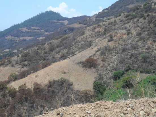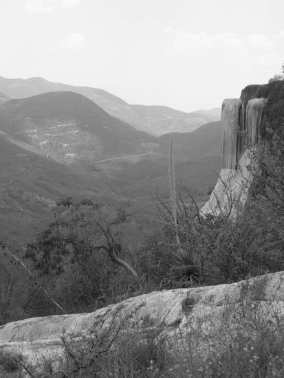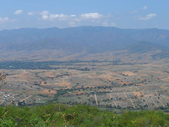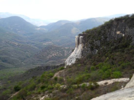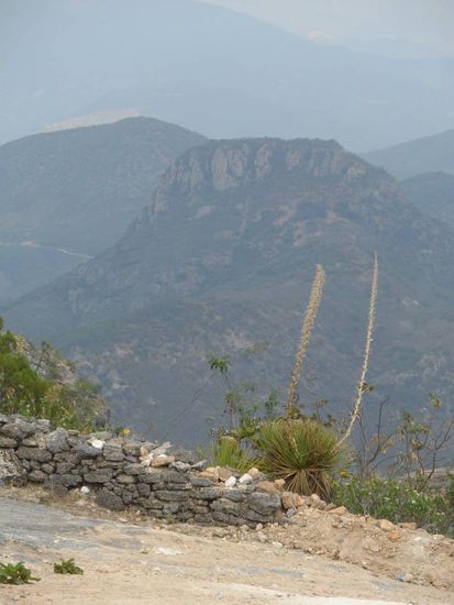 Die Strecke nach Hierve el aqua ist echt schoen. Die Landschaft wechselt zwischen absoluter Trockenheit (so wie sich die meisten von euch wahrscheinlich Mexiko vorstellen - mit Kakteen etc.) bis hin zu gruenen Waeldern. Eigentlich gehts nur einmal einen Berg rauf und wieder herunter aber wegen der vielen Kurven brauchen wir ne 3/4 Stunde fuer die ca. 10km.