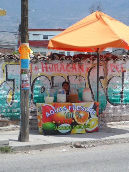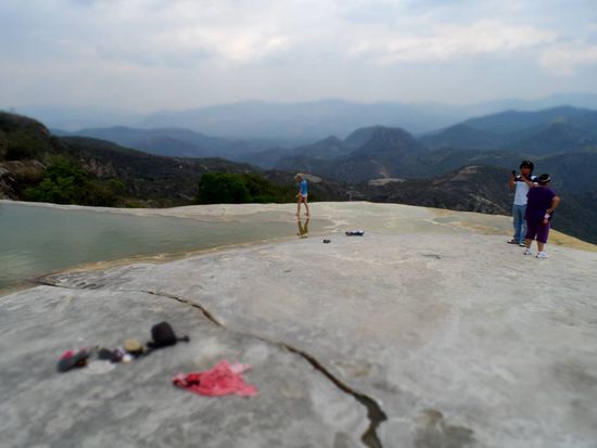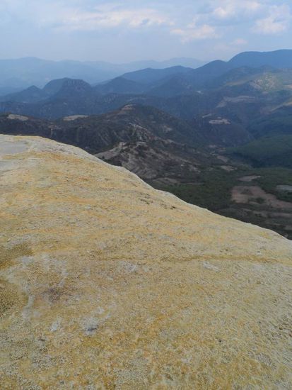 Normalerweise ist ein Wasserfall ohne Wasser ja eher unspaektakulaer, nicht jedoch der "Hierve el aqua" Wasserfall. Von Oaxaca ging es erstmal per Collectivo nach Mitla (wo ich mir am ersten Tag die Ruinen angeschaut hatte). Von dort aus ging es dann mit einem Pickup weiter.