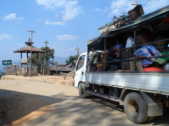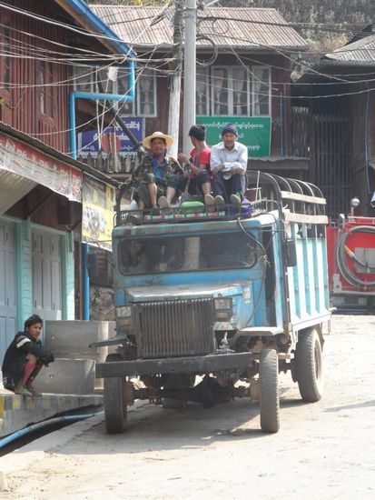 Am naechsten Morgen ging es per Pick up Truck nach Namhsam. Der Tipp einen der beiden begehrten Plaetze neben dem Fahrer zu resevieren war echt Gold wert. Hinten war es naemlich ziemlich eng und zusaetzlich gabe es noch ne ordentliche Ladung Abgase und Staub von der Strasse.