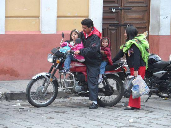 Beim Abendessen lernen wir einen weiteren Teil der Familie kennen. Das Familienoberhaupt besitzt mehrere Kleinbusse die im Nahverkehr eingesetzt werden. Tja und was passiert in Guatemala wenn man zu Geld kommt? Da gibt es sofort ein paar "nette" Leute die mal bei einem anrufen und einen freundlich um eine kleine monatliche "Spende" bitten. Fuer den Fall das man nicht bezahlt hat man dann ein Familienmitglied weniger und in Guatemala wird mit soetwas nicht gescherzt. Es ist schon echt krass was sich die Guatemalteken taeglich gegenseitig fuer ein Leid zufuegen. Nach jahrelangen Buergerkrieg gibt es einfach viel zu viele Leute die nie etwas anderes gelernt haben als eine Waffe zu benutzen