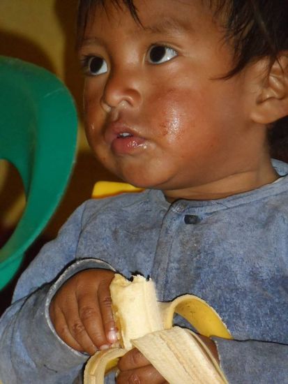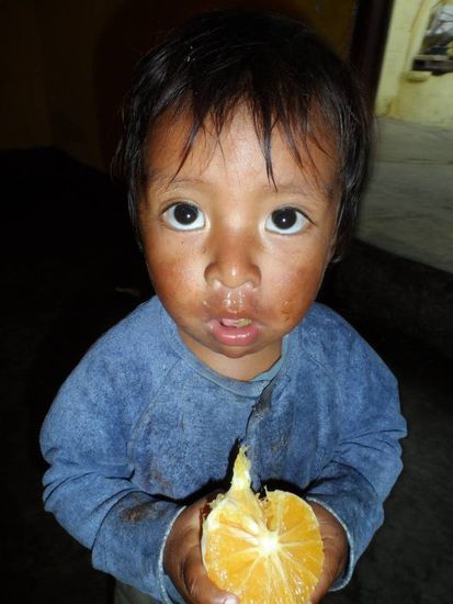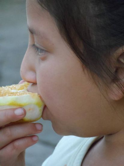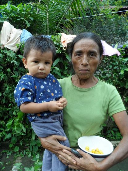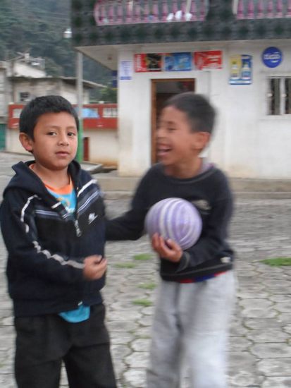 Diesmal haben wir etwas mehr Glueck, am Tag zu vor gab es fuer die Kids etwas zu essen und so sind sie auch am naechsten Tag gekommen und haben sich riesig ueber unsere Mitbringsel (10kg Maismehl, 2kg Zucker sowie Bananen und Orangen) gefreut. Das normale Essen fuer die Kids zu Hause besteht, sofern es ueberhaupt etwas zu essen gibt, aus Tortillas (die wiederrum aus Maismehl und Wasser bestehen) mit Salz und Chilli. Und da beschwere sich nochmal einer ueber sein Essen in Deutschland.