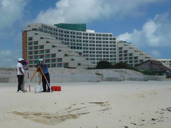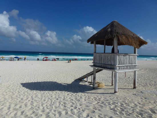 Am naechsten Tag habe ich einen Strandtag in Cancun eingelegt. Schoener Strand aber die vielen Bettburgen im Hintergrund sind beaengstigend. Und es werden immer mehr........