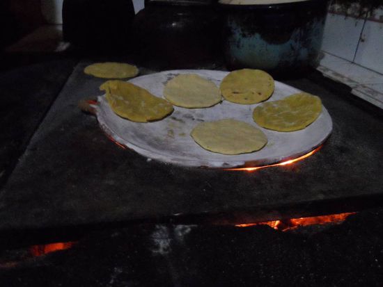 So viel zum Thema basic: hier wird noch mit Holz gekocht. Ist auf der einen Seite ja ganz romantisch aber dafuer stinken alle Klamotten nach Rauch und beim essen fehlt mir die Luft zum atmen. Das Essen ist auch eher so la la bis oh mein Gott was zur Hoelle ist das denn bitte? Ein Beispiel gefaellig? Bitte sehr: ein "Erfrischungsgetraenk" aus Tortillas (ja das sind die Maisfladen die die Omi gerade backt) und Wasser - mhhhh was koestlich
