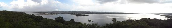Stattdessen fahre ich einfach mal mit einem kleinen Boot ans andere Ufer und geniesse von einem Aussichtspunkt den Blick auf Flores.