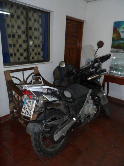 Am naechsten Morgen steht doch tatsaechlich ein deutsches Motorrad vor unserer Tuer: