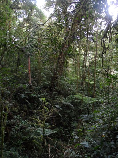Am naechsten Morgen ging es dann zum Nationalpark Monteverde. Ich wurde schon gewarnt - keine Tiere erwarten. Aber dafuer gibt es 100% Regenwald in seiner seiner schoensten Form.
