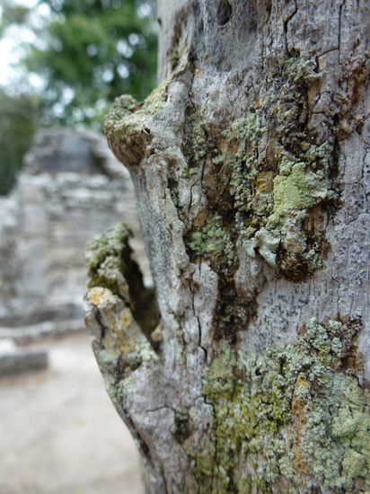 Ballspielplatz der Maya - Ziel des Spiels war es einen Ball durch den gegnerischen Ring (oben links bzw. rechts) zu kicken. Gespielt wurde jedoch nur mit der Huefte und den Schultern (Haende und Fuesse waren tabu). Anschliessend wurde die Verliermannschaft den Göttern geopfert wurde (kein Scherz!).
