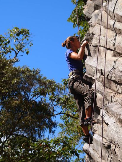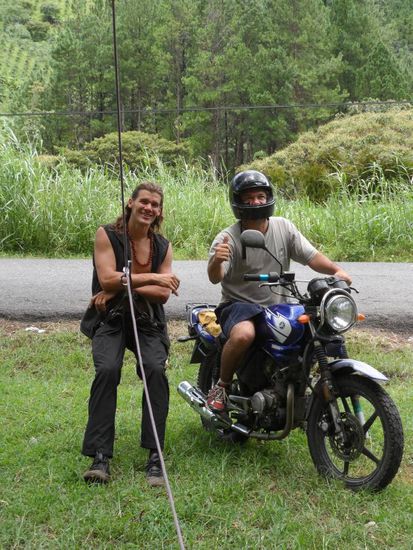 Oefter mal was Neues: Christian (Deutscher der seit ueber 10 Jahren in Panama lebt) klettert free solo (also ohne Sicherung) in Turnschuhen (!!!!) und hat dabei noch die Seile dabei um die Routen fuer uns als Toprope einzurichten - crazy
