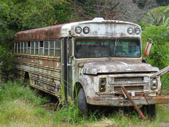 Nach ueber einer Woche auf Bocas war mal wieder ein laengerer Reisetag angesagt. Um 9:30h ging es mit dem Boot zum Festland und dort direkt mit dem Taxi zur Busstation. Beim Warten auf den Bus fiel Heidi auf das sie ihren Pass im Hostel vergessen hatte. Doppelt bloed fuer sie da sie zum einen nochmal den ganzen Weg (Taxi, Boot) nach Bocas zurueck musste und sie nicht mehr wirklich viel Zeit bis zum Abflug in Panama hatte und ausserdem eigentlich nur noch Kohle fuer den Bus bis Panama City hatte. Habe ihr dann schnell mal noch ein paar $ fuer das Taxi und das Boot gegeben, damit sie wenigstens den Stress nicht auch noch hatte. Wahrend Heidi sich auf den Weg zu ihrem Pass gemacht hat, fing es in Stroemen an zu regnen und ausserdem war in keinem der vorbeifahrenden Busse ein Platz frei. So lange (1,5 Std) habe ich noch nie auf einen Platy im Bus warten muessen, zumal ungefaehr alle 15min ein Bus vorbeifuhr.