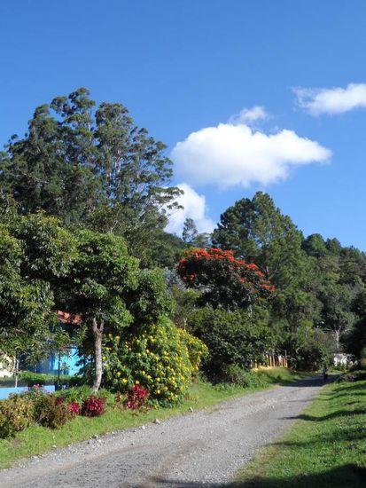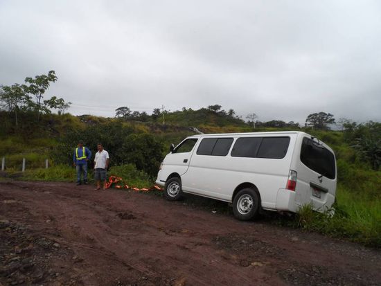 Auf dem Rueckweg zu unserem Shuttle kam dann die naechste Ueberraschung. Unser Shuttle war weg. Ein anderes Shuttle hatte sich auf rutschiger Strasse ein bisschen in den Abgrund bewegt und unser Fahrer hatte die Leute aufgesammelt und sie zurueck nach Boquete gefahren.