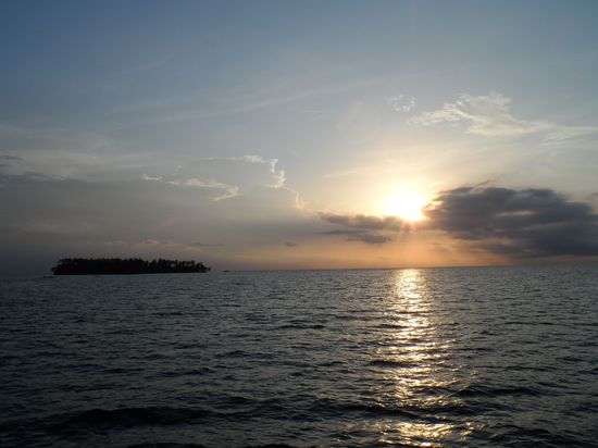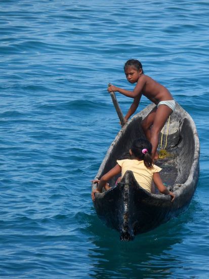 Mit zwei Jeeps ging es dann um 5:30 ueber zum Teil recht holprige Strassen in Richtung der San Blas Inseln (ca.4Std). Dort angekommen mussten wir unser Gepaeck und alle Vorraete fuer den 5taegigen Trip auf ein Fischerboot verladen das uns dann zu unserem Boot fuhr (30min). Die Region der San Blas Inseln gehoert zwar offiziel zu Panama wird jedoch von dem indigenen Volk der Kuna verwaltet.