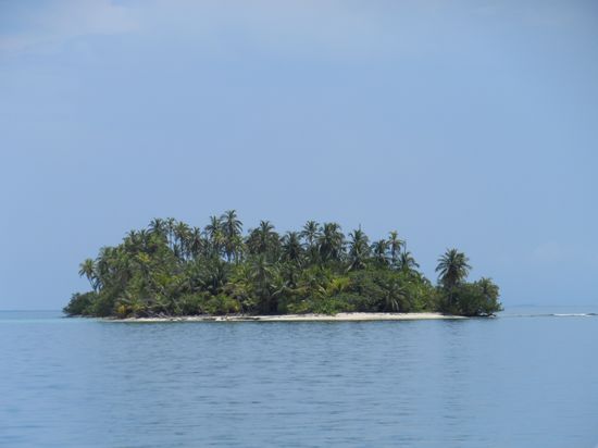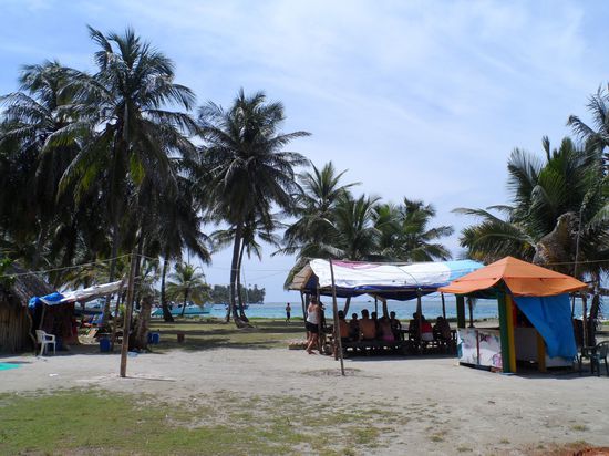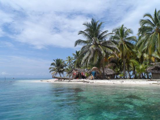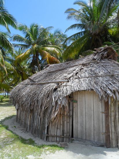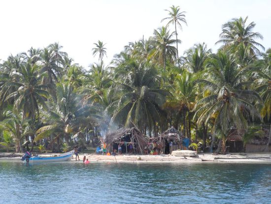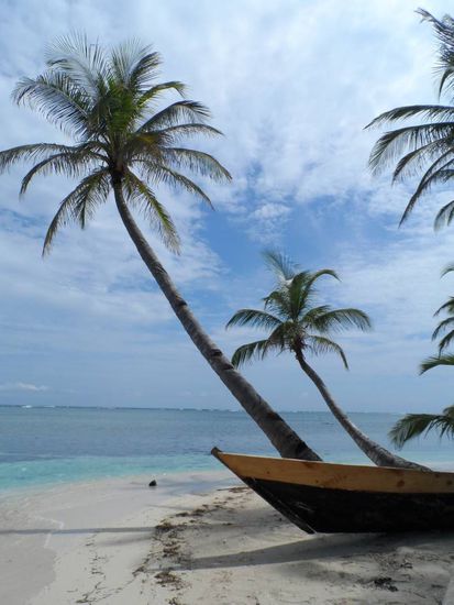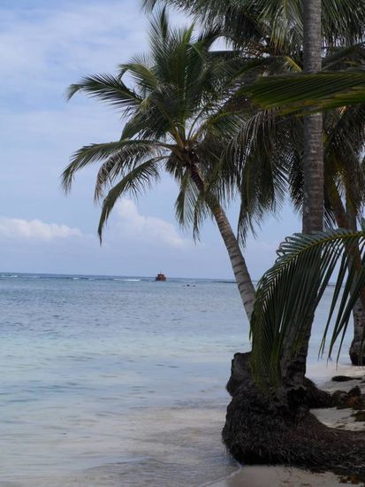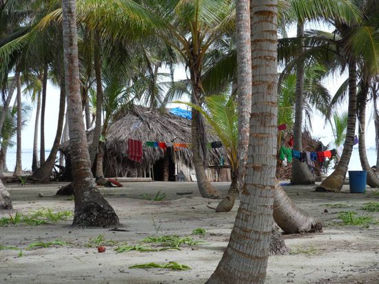 Die Inseln sind einfach nur der Traum. Kristallklares Wasser, feine weisse Sandstraende und Kokusnusspalmen. Zum Urlaub machen ist das ja herrlich, aber wie die Kuna hier leben moechte ich nun wirklich nicht.