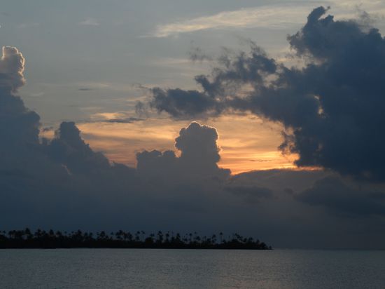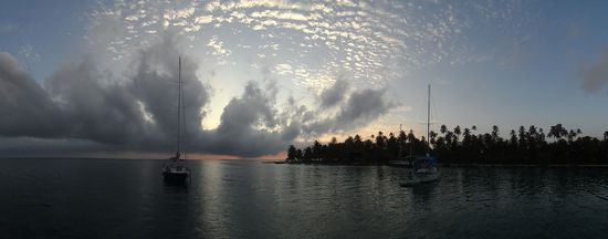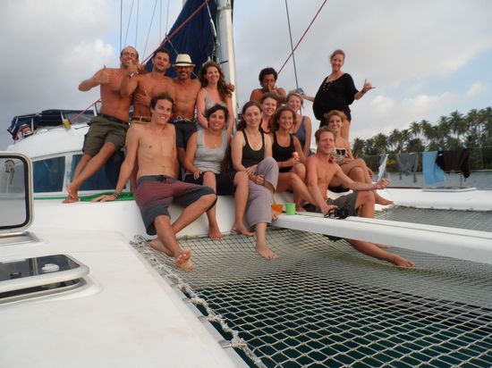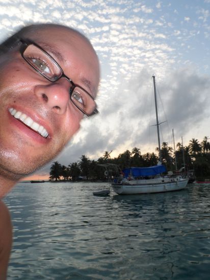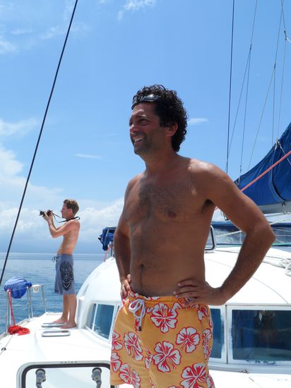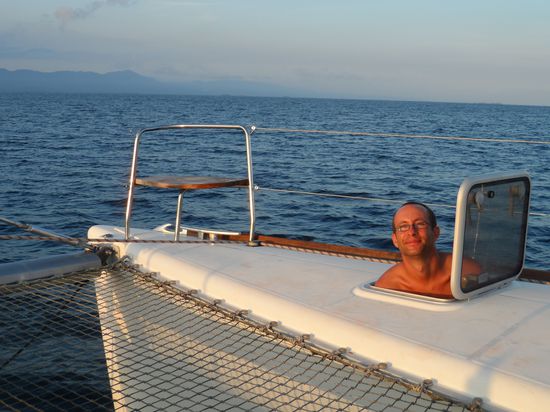 Am naechsten Tag hiess es dann puenktlich zum Sonnenaufgang Abschied von den San Blas Inseln zu nehmen. Jetzt erwarteten uns ca. 40 Stunden auf offener See. Ist schon ein komisches Gefuehl wenn man weder Land noch Inseln am Horizont sehen kann. Genau genommen haben wir an unserem vierten Tag gar nichts gesehen, kein Land, kein anderes Boot, keine Fische, kein Treibholz, einfach nur der Horizont und die Sonne die auf uns herunterbrutschelte. Ich sag euch so ein Tag ganz ganz schoen laaaaaaaaang werden. Vorallem fuer die beiden armen Maedels die seekrank wurden. Der Wellengang war zwar sehr moderat (<0.5m) aber es hat halt doch ein bisschen geschaukelt. Ich hatte wie die meisten an Bord Tabletten gegen Seekrankheit genommen und bis auf einen kurzen Moment am ersten Tag ging es mir erstaunlich gut.