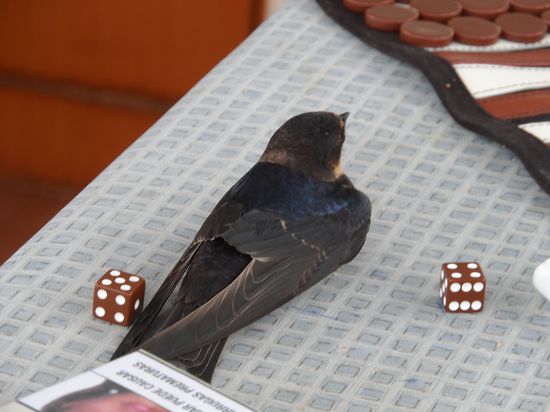 Ansonsten ist nicht mehr wirklich viel passiert an unserem zweiten Tag auf hoher See. Absolute Flaute, deshalb sind wir fast nur mit Motorkraft gefahren. Die weiteren "Highlights": ein paar Fische die aus dem Wasser gesprungen sind, ein Containerschiff in einiger Entfernung, ich habe eine Partie Backgammon gewonnen und es kam ein kleiner Vogel zu Besuch.