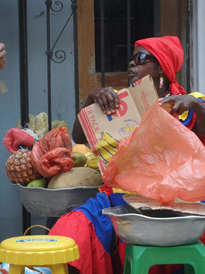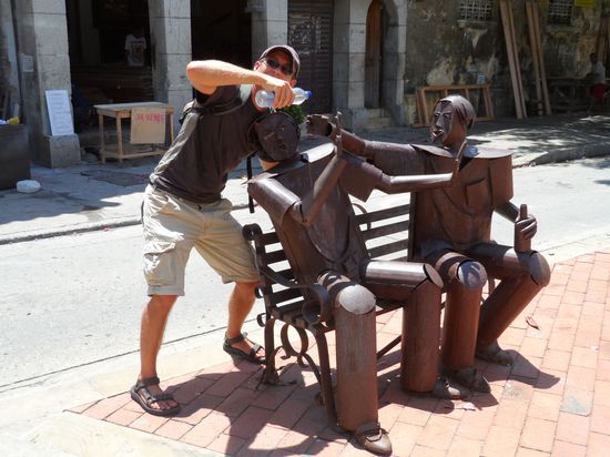 Das einzige was eher unschoen ist ist die Temperatur. Bereits morgens um 8 Uhr schwitze ich wie ein Schwein. Der Reisefuehrer hatte Cartagena zwar als heisseste Stadt Kolumbiens angekuendigt, aber jetzt weiss ich auch was sie damit meinten.