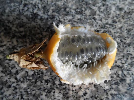 z.B. eine Mini Drachenfrucht, die aussen gelb ist und im Vergleich zu einer normalen Drachenfrucht extrem aromatisch ist