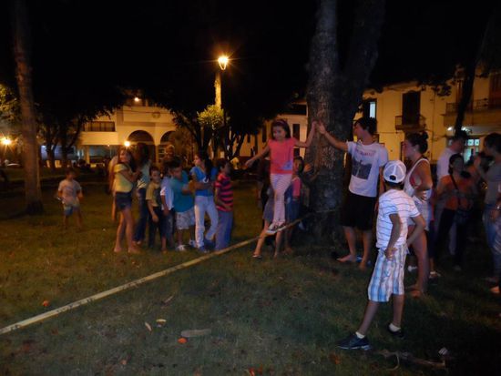 Abends spannen wir im Park vor dem Hostel eine Slackline. Das bleibt den Kindern nicht verborgen. Zwischenzeitlich stehen ueber 30 Kids Schlange um ueber die Slackline zu balancieren.