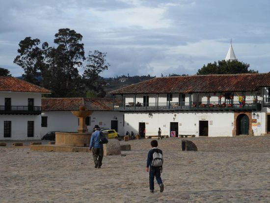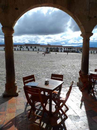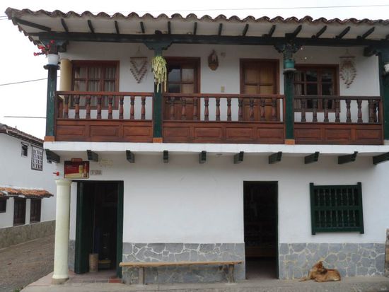 Der Ort erinnert mich ein bisschen an Barichara, auch wenn hier einiges anders ist. Es liegt deutlich hoeher als Barichara und ist damit deutlich kaelter und auch regnerischer. Ausserdem ist es hier deutlich touristischer. Das hat Vor- und Nachteile. Das Angebot an Cafés und Restaurants und Souveniershops ist deutlich groesser (wer¨s braucht).