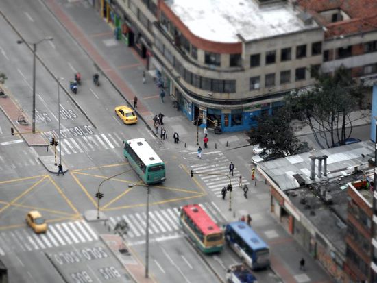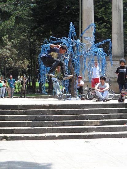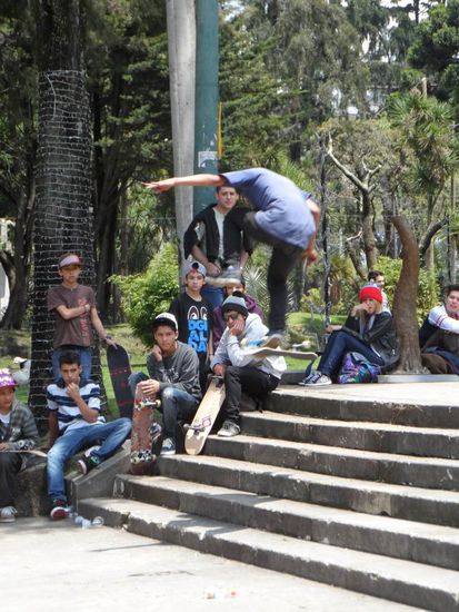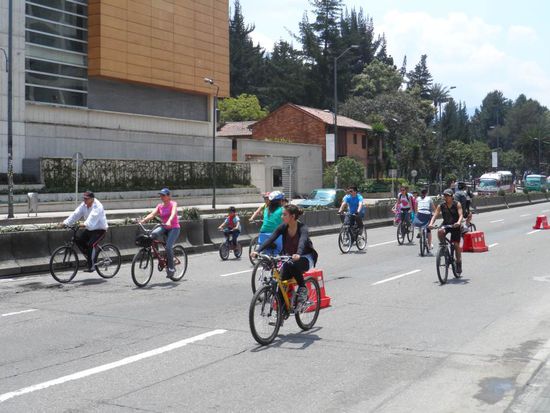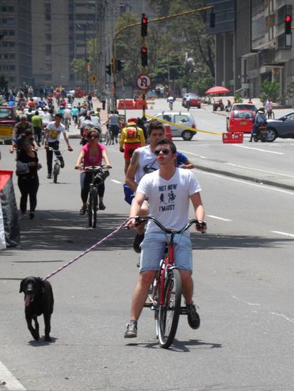 Sonntags werden in Bogota einige Strassen fuer den Verkehr gesperrt und dafuer duerfen sich dann Radfahrer, Skater etc. austoben.