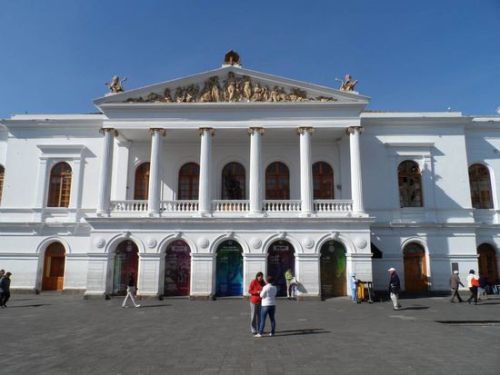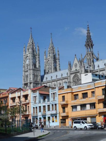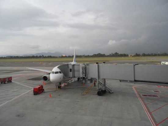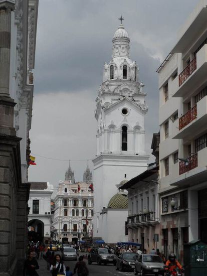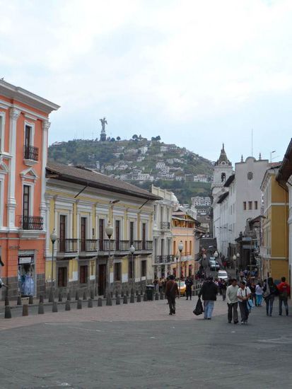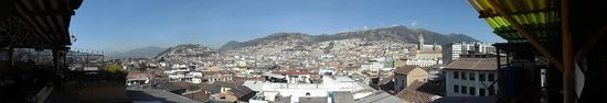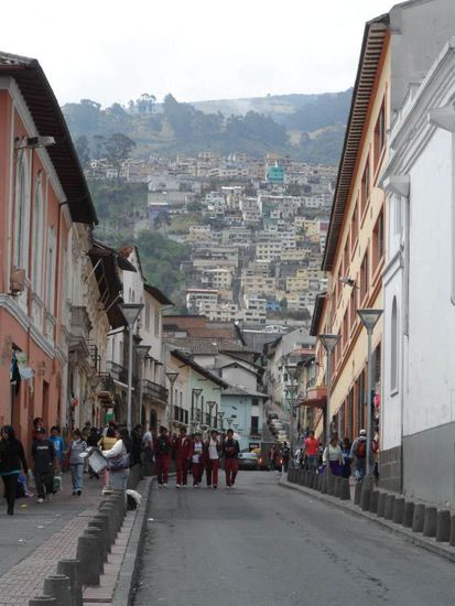 Die Landung in Quito ist schon SEHR spektakulaer. Quito wird von Bergen umrundet, so dass die Maschine sind langsam aus der Hoehe "herunter schrauben" muss. Ausserdem liegt der Flugahafen mitten in der Stadt und man fliegt nur wenige Meter ueber die Haeuser - nochmal ein extra Nervenkitzel.