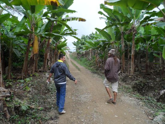 In Quito bin ich erstmal mit dem Taxi zum Busterminal gefahren (ca. 25min). Dort habe ich dann einen Bus nach Santo Domingo genommen (ca.3 Std). Am Busterminal habe ich dann nochmal Edwin angerufen. Die Kommunikation war etwas schwierig da er nur spanisch spricht und neben der Telefonkabine ein Typ mit einem Presslufthammer am arbeiten war. Egal wir haben uns dann doch noch gefunden. Mit einem Taxi ging es zu einem weiteren Taxistand von dem aus Taxis in Richtung Puerto Limon fahren (ca. 30min). Dann nochmal 15 endlose Minuten auf einer staubigen und ziemlich holprigen Strasse und dann habe ich es endlich geschaftt!
