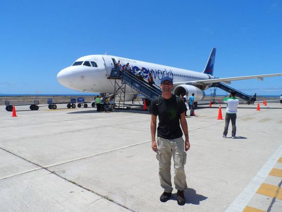 Am Flughafen wird erstmal mein Gepaeck durchleuchtet. Das ist ne Routine bei allen Fluegen auf die Galapagosinseln. Die suchen dabei nicht nach Sprengstoff etc. sondern eher nach Obst, Samen.....