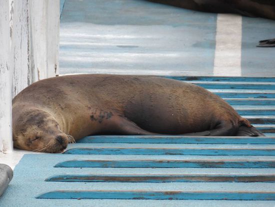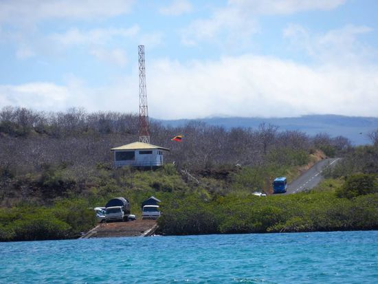 Gegen Nachmittag bin ich dann endlich angekommen. Erstmal im Hostel einchecken und dann ab zu einem der zahlreichen Reisebueros. Dort werde ich mit Informationen ueber die diversen Tours zugeschuettet. Nach 2 Stunden in diversen Reisebueros raucht mir der Kopf. Das bisser beste Angebot von der Route her ist leider natuerlich auch das teuerste. Egal kurz bevor das Reisebuero um 20h schliesst buche ich spontan eine 10 taegige Bootstour. Apropos spontan: das war mal ein echtes Last-Minute-Angebot, das Boot war naemlich schon am selben Tag gestartet und so musste ich am naechsten Tag von Santa Cruz zur Insel Isabella dem Boot hinterher reisen. Das mit dem Boot zur Insel Isabella war auch noch so ne Geschichte. Abfahrt um 7 Uhr. Die Dame vom Reisebuero meinte "Da buche ich Ihnen besser mal einen Platz auf dem Boot". Anruf bei der entsprechenden Firma "Sorry das 7 Uhr Boot ist ausgebucht". In Deutschland waere es dabei geblieben, voll ist voll. Aber nicht hier Nachdem die Frau dem Typen 5min lang Honig ums Maul geschmiert hatte war auf einmal doch noch ein Platz frei.