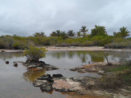Nachmittags dann der erste Landausflug. Per Fahrrad geht es zu einer Stelle wo wir Flamingos und andere Voegel beobachten. Anschliessend besuchen wir noch ein Besucherzentrum in dem div. Landschildkroetenarten leben. Unser Guide Samuel ist echt klasse. Bei den Guides gibt es 3 Klassen (I-III), wobei die Klasse III nur fuer studierte Biologen (wie Samuel) ist.
