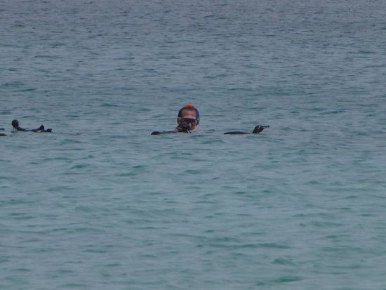 Dann stand schnorcheln auf dem Programm, aber bis auf den Franzosen und mich haben sich alle gedrueckt. Das Wasser war aber auch scheisse kalt. Ausserdem gab es auch nix zu sehen, bis Andre meinte dadrueben waren gerade Schildkroeten oder Pinguine. Ne nicht oder, Schildkroeten UND Pinguine