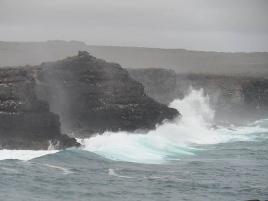 Solche Wellen sind zwar schoen anzuschauen, aber wenige Meter weiter liegt das Boot vor Anker. Da wurde das Mittagessen etwas schwierig.