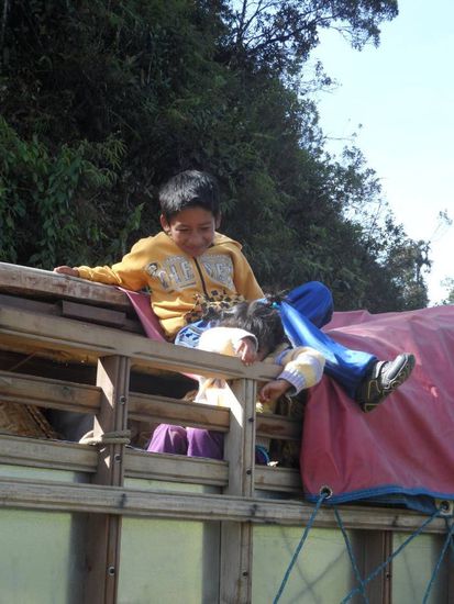 Auf geht es auf die letzte Etappe. Die Nachmittagssonne ist echt ganz schoen heiss und natuerlich gibt es im Collectivo keine Lueftung oder Klimaanlage. Dafuer entschaedigt wenigstens eine traumhaft schoene Landschaft - tolles Tal und schoenes Licht der Abendsonne.