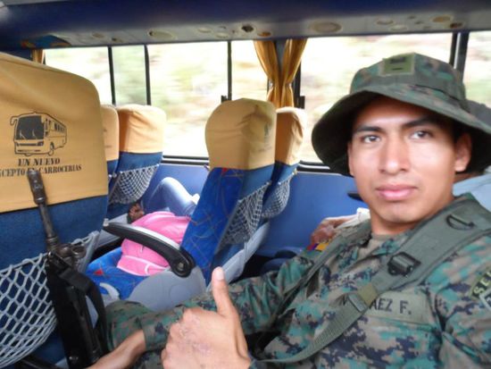 Zwischendurch steigen ein paar Soldaten in den Bus. Oh je ist die Strecke an der Grenze etwa soooo gefaehrlich das die zu unserem Schutz mitfahren? Noe die waren einfach nur zu faul zurueck zu ihrer Kaseren zu gehen und haben lieber den Bus genommen.