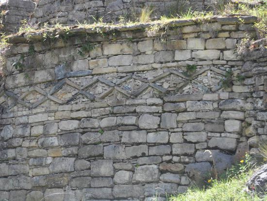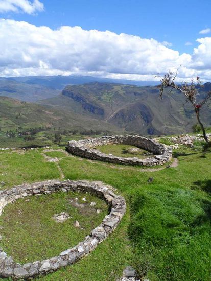 Ruinen von Kuelap - einige Hundert Jahre vor den Inka von den Chachapoya errichtet. Aehnlich wie die Inka wurde beim Bau der Festungsanlage einfach Stein auf Stein gebaut, ohne Zement etc.