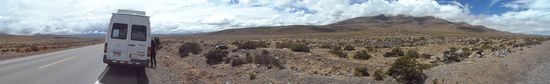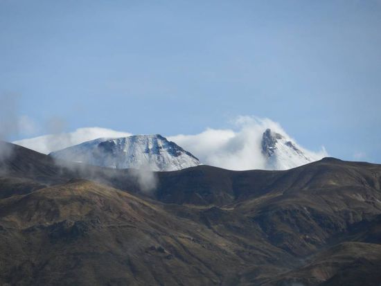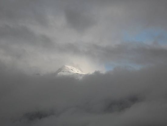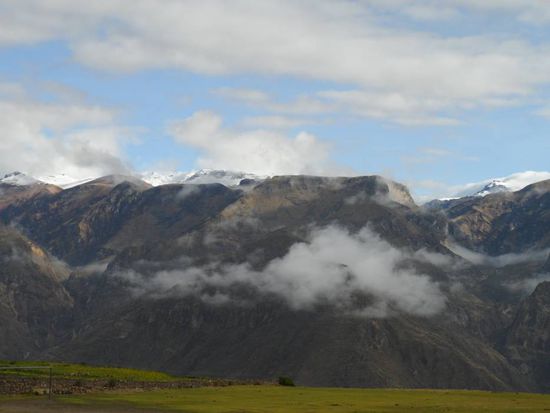 Fuer einen kurzen Augenblick zeigen sich die Vulkane mal hinter der Nebeldecke. Die Gegend um Arequipa ist vulkanisch extrem aktiv. Jeden Tag gibt es 2-3 Minierdbeben.