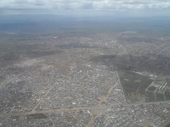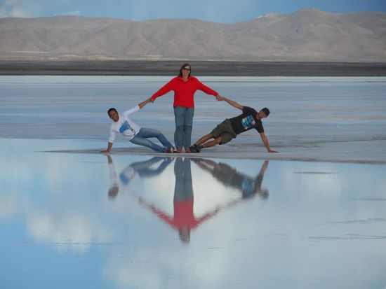 Da wir nicht mehr so viel Zeit hatten und meine Eltern sich aber ungerne den Salzsee entgehen lassen wollten haben wir uns zu Weihnachten den Luxus eines 45minuetigen Flugs nach Uyuni gegoennt (statt 19 Std., Copacabana - Uyuni).